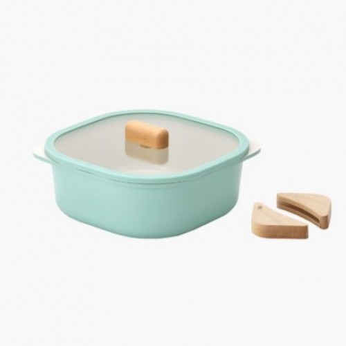 Neoflam - FIKA 20cm IH雙耳燉鍋連蓋+木手柄2件 (薄荷綠)